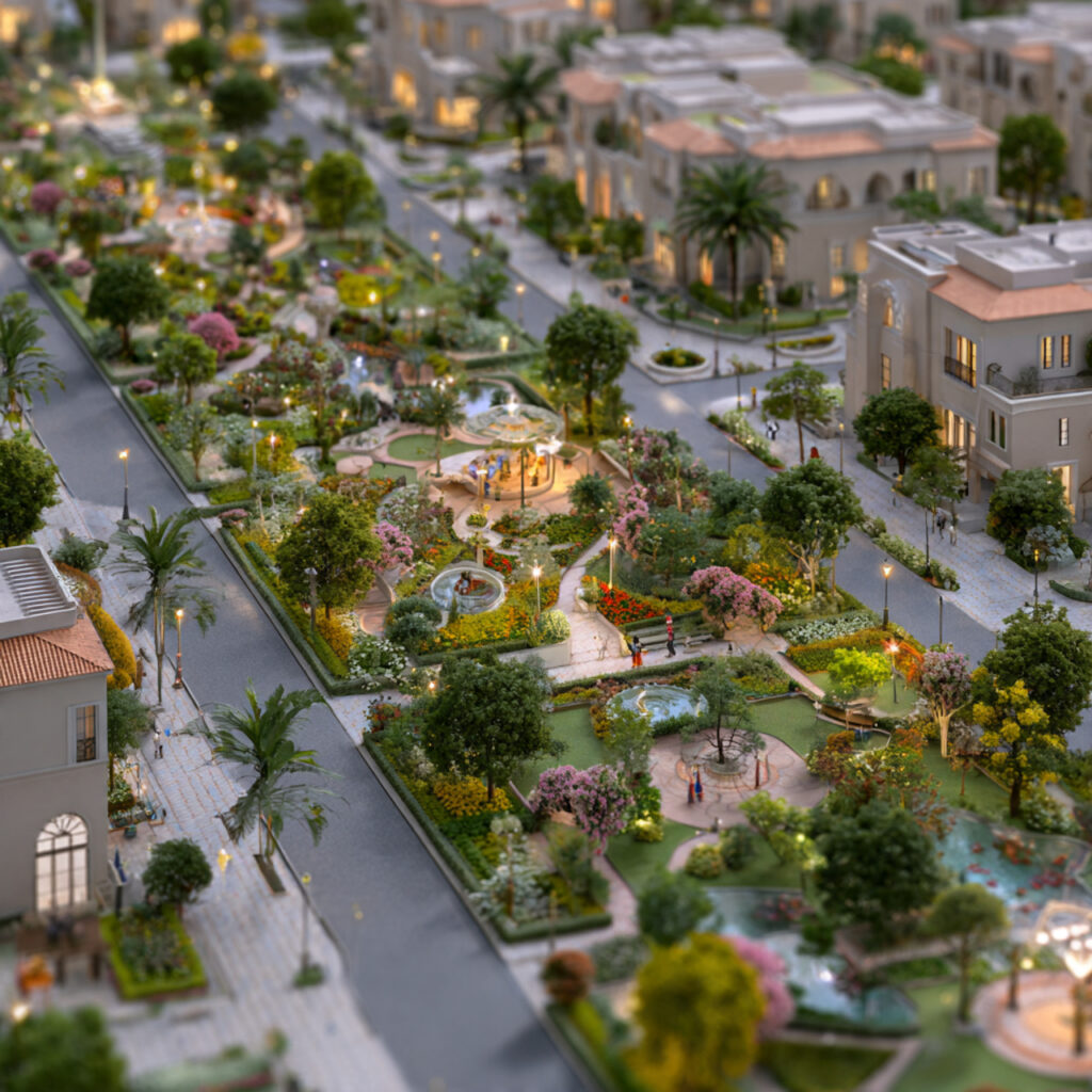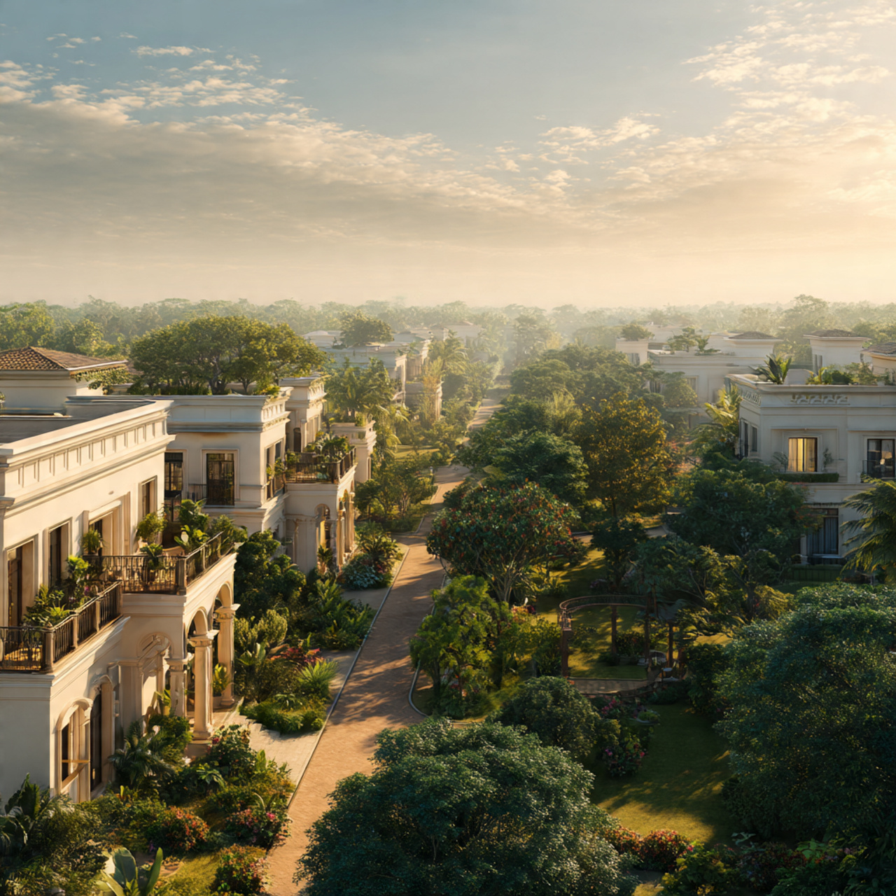 A thoughtfully planned luxury villa township with expansive open spaces and greenery.